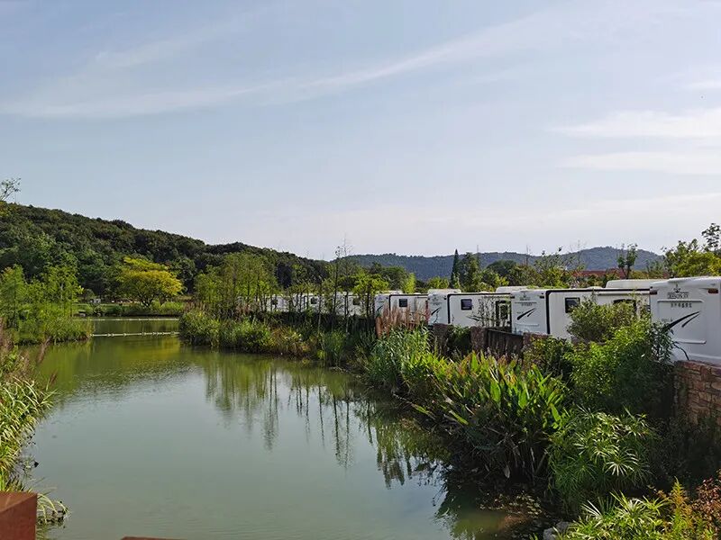 常州武进的太湖湾露营谷,占地近700亩,在山脚下一眼望不到尽头。